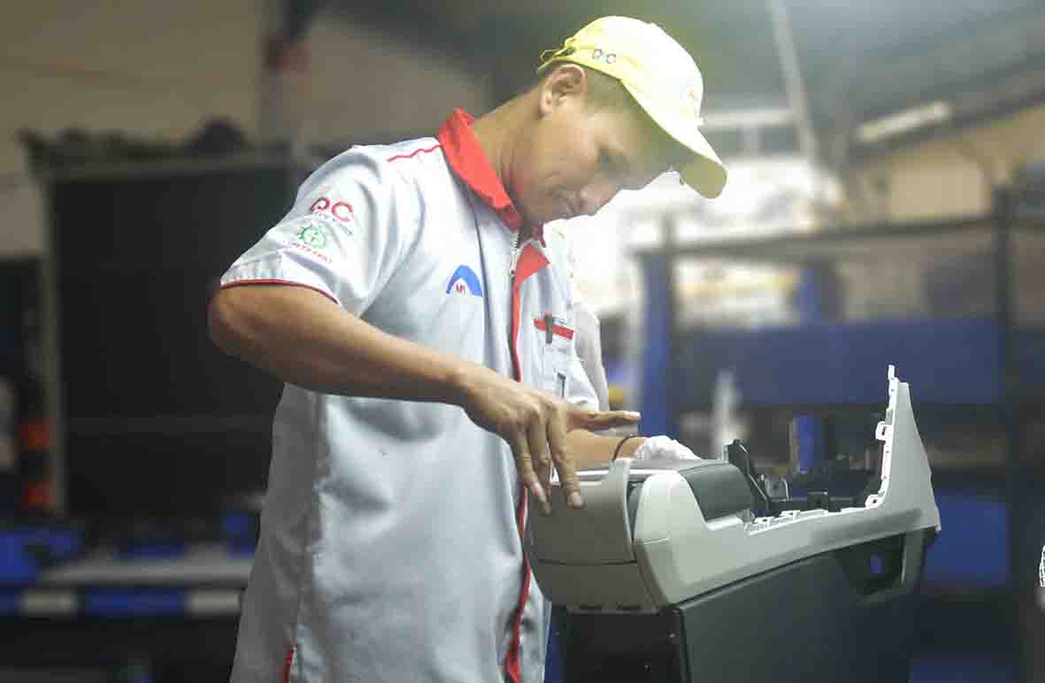 The advanced plastic processing technology that we have developed over many years is a key element that enables integrated production of vehicle components. Thoughtful manufacturing by our skilled engineers supports our competitiveness. In recent years, we have introduced new equipment to increase productivity while maintaining and updating existing equipment. Workers and machines collaborate with their respective strengths to produce products that meet our customers' needs. We produce components for ATPM.