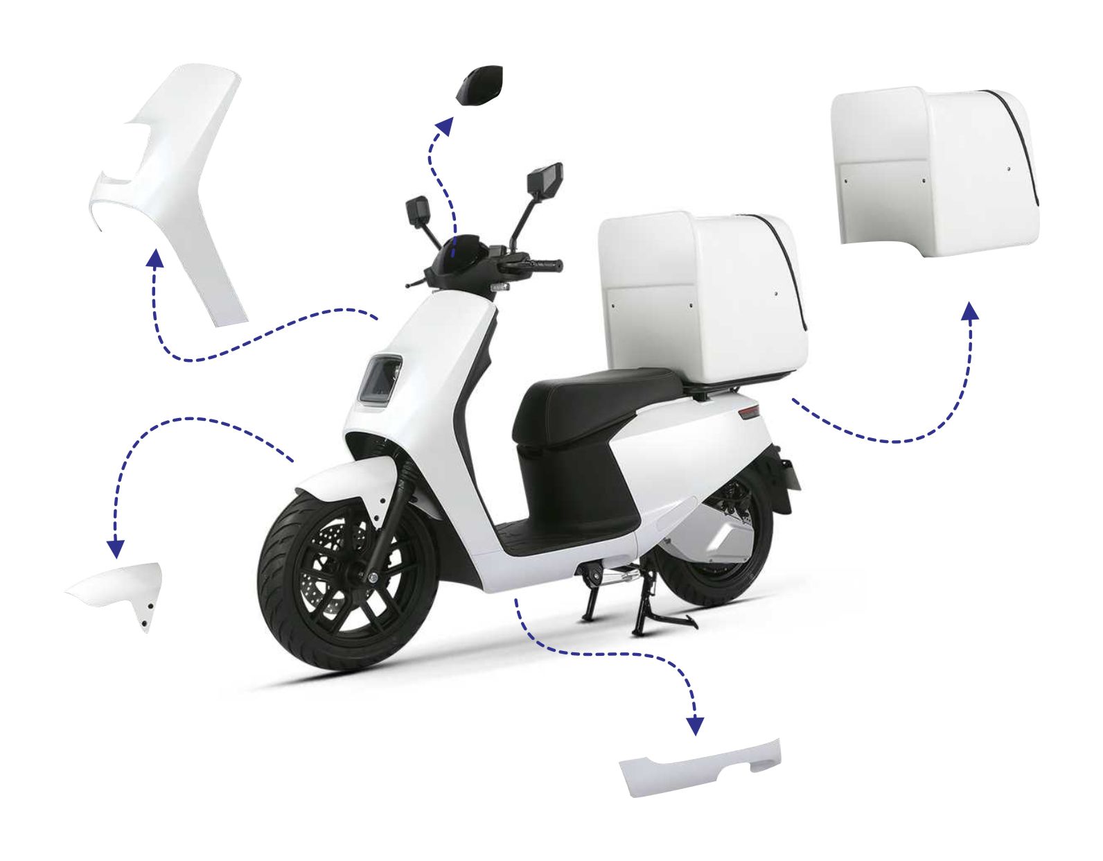 Our composite molding technology supports our activities in diverse fields, ranging from industrial products, cars and motor products. We use our years of expertise and advanced technologies and equipment to produce high-quality products. Composite materials that are highly rigid and lightweight help reduce fuel consumption and contribute to creating a carbon-neutral and economical society.